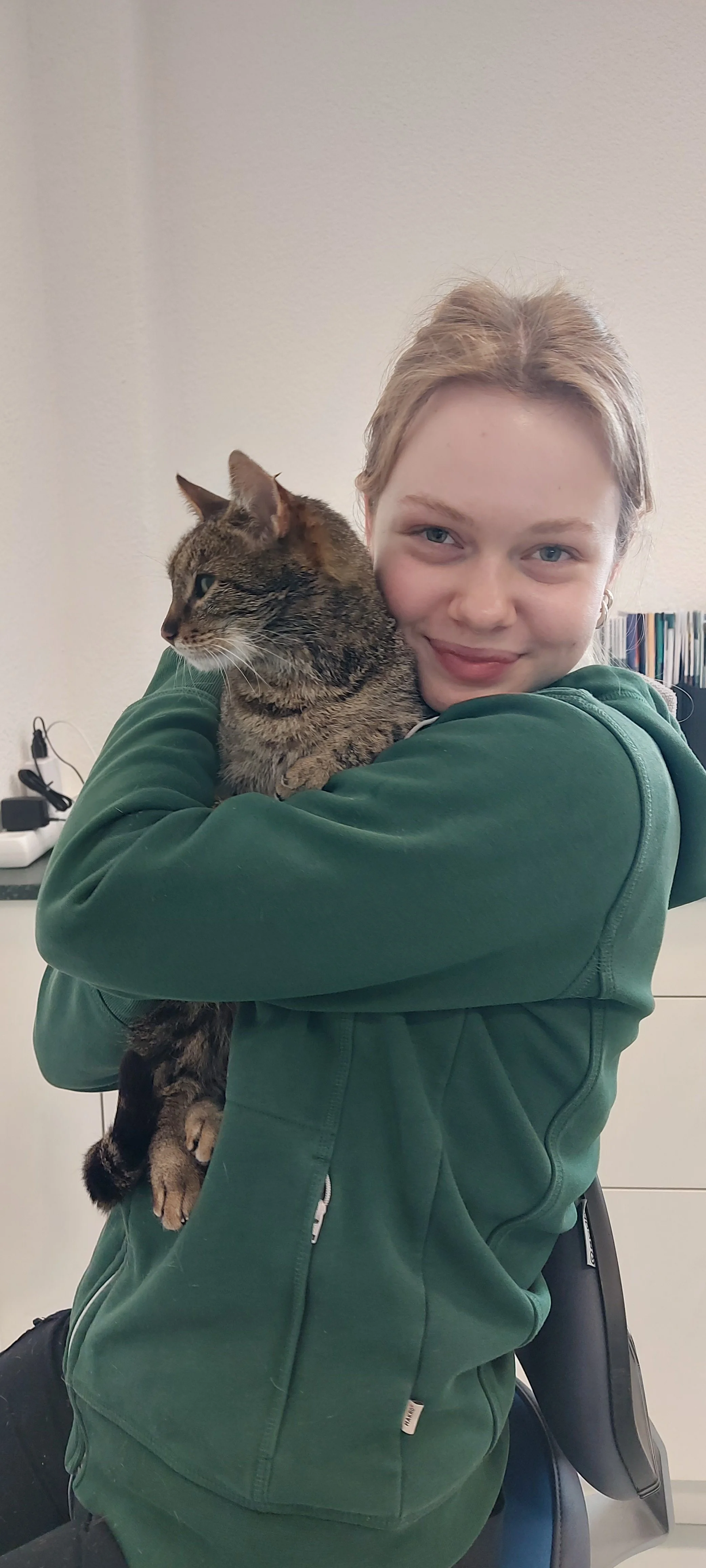 has been happily supporting our team every Wednesday and Thursday since January 2026. She also completed her training as a veterinary practice assistant in 2025, which she was able to do in the exciting environment of the Zurich Animal Hospital.